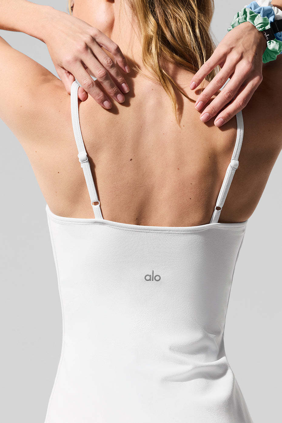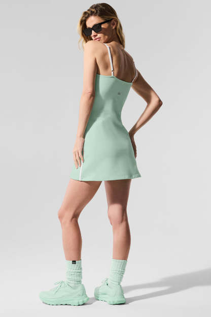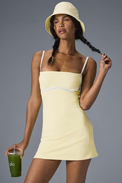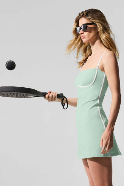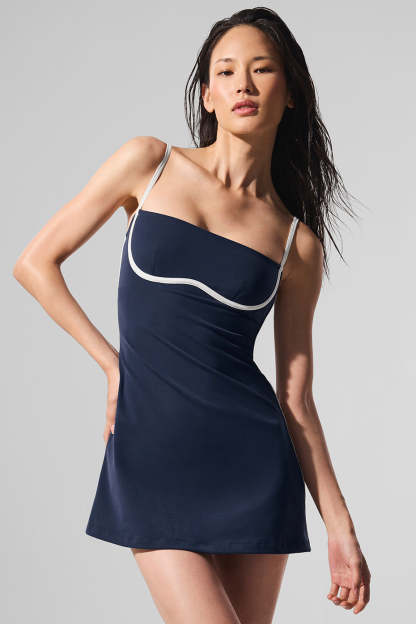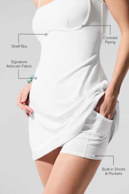 How cute is this dress? From the contrasting piping to the adorable A-line fit that swoops in at the waist and eases out through the hips, there’s nothing not to love. It's practical, too, with built-in shorts (plus pockets) and a shelf bra with removable cups. And the Airbrush fabric is smoothing but not overly compressive—prime for working out or wearing out.