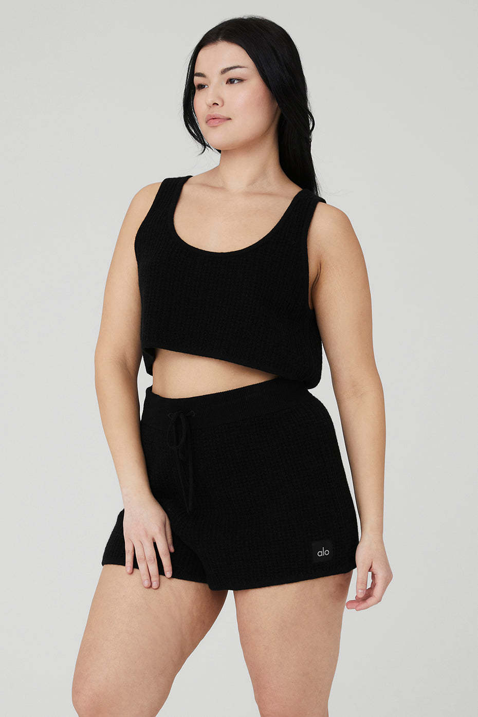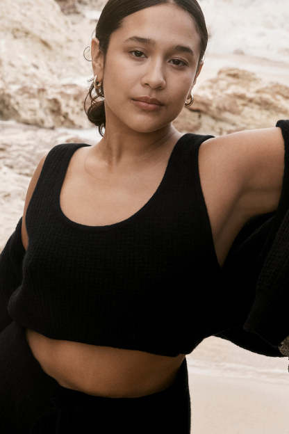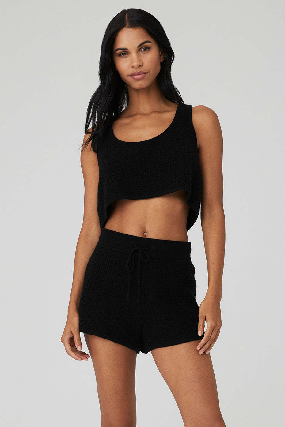 Luxe loungewear, unlocked. The Cashmere Plush Waffle Cropped Tank serves up cashmere comfort with a lightweight fabrication that turns lounge into luxury. Add this cropped, loose fitting, scoop neck tank plus a matching pair of Cashmere High-Waist Plush Waffle Shorts to the vacay packing list.