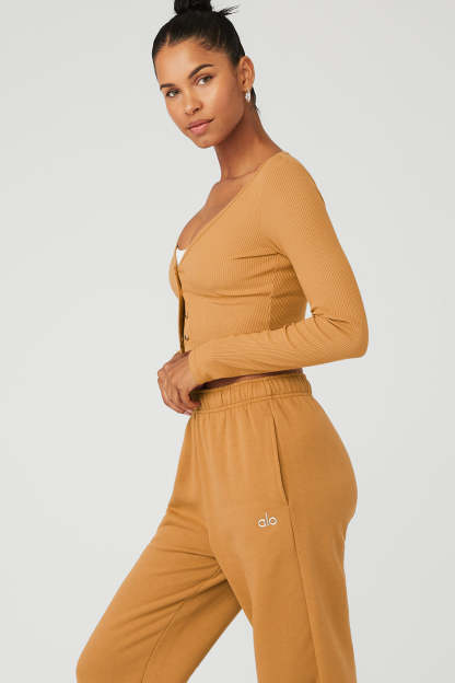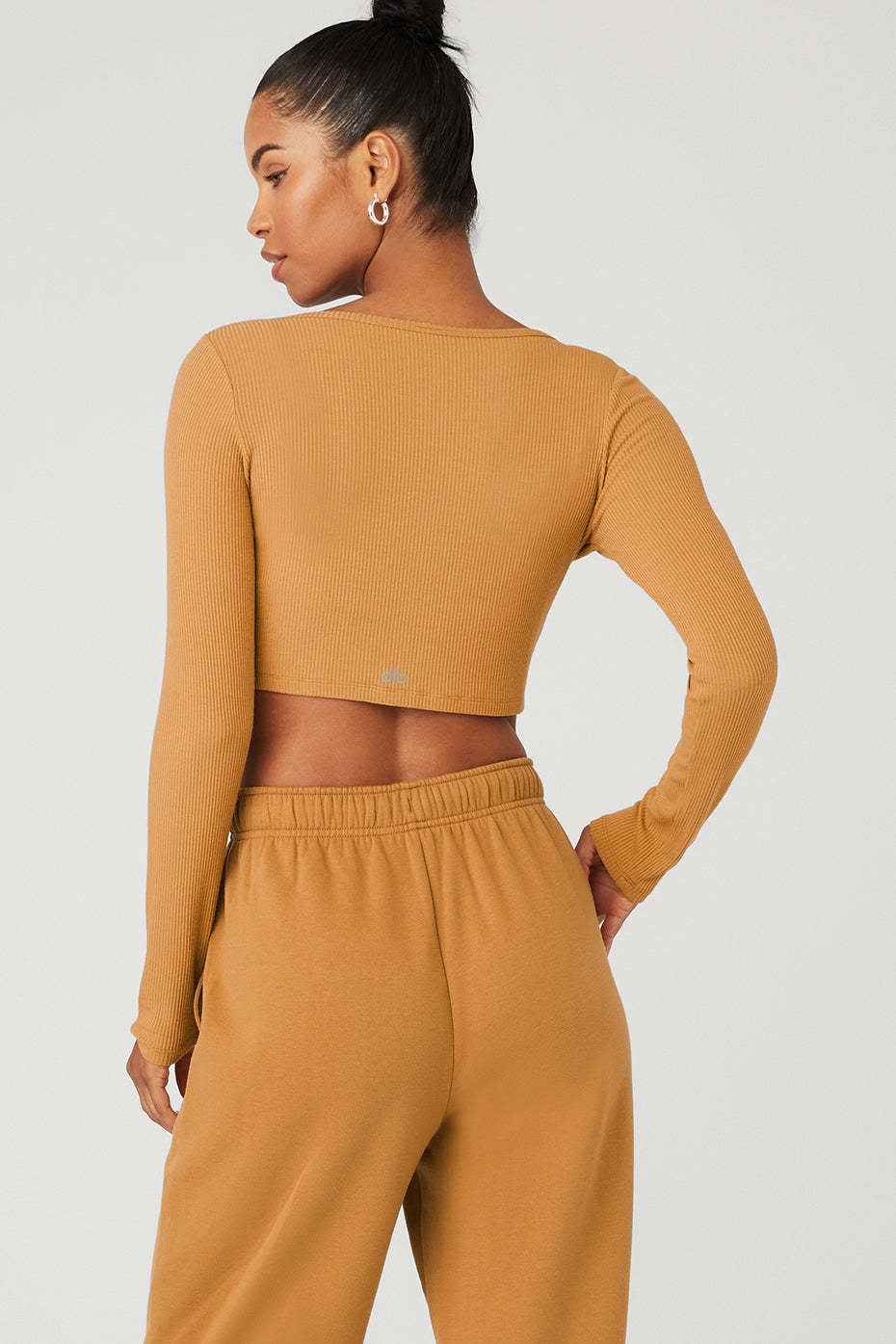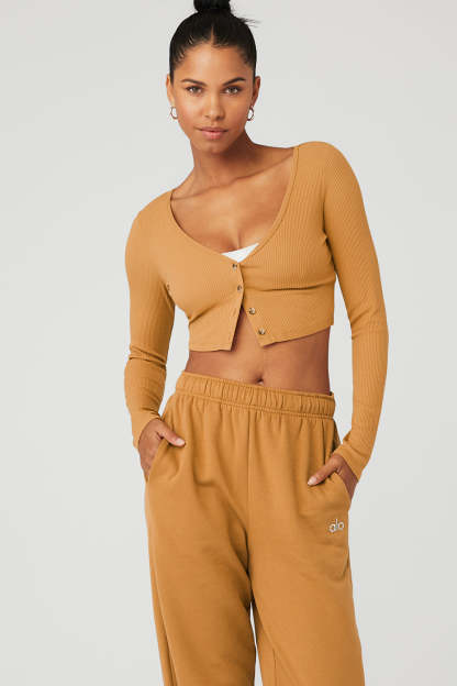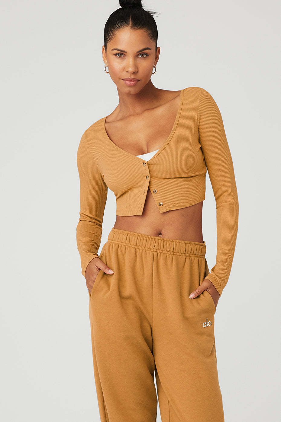 An ultra-cropped cardi with a pretty low V? Yes, please. The Ribbed Cropped Whisper Cardigan has a soft, lightweight feel and front button closure. Wear it with your favorite athelo bra and high-waist legging.