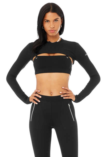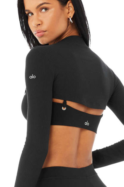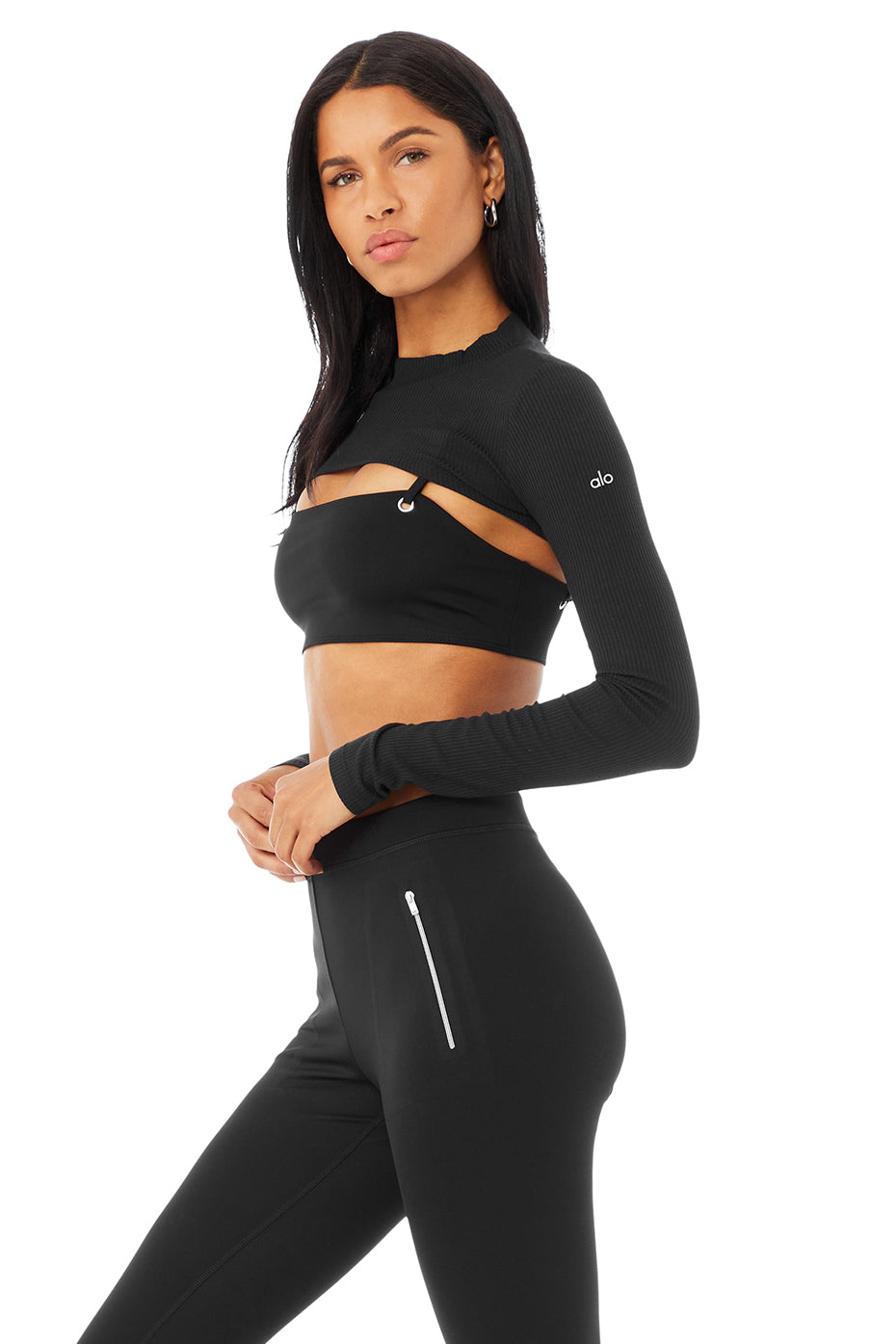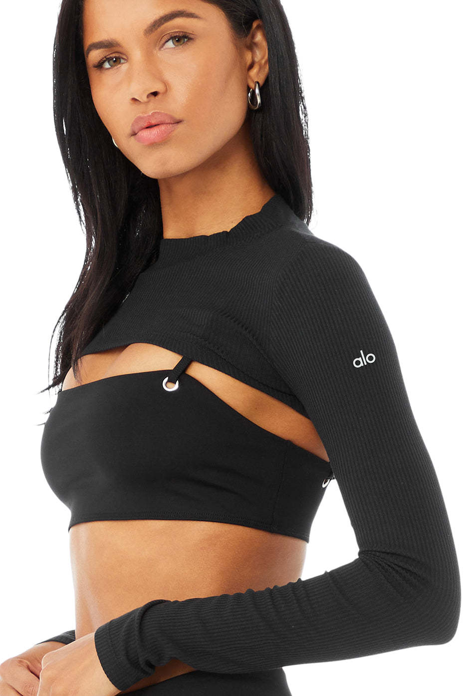 An extreme crop for extra coverage & extra cool. The Thrill Seeker Shrug is made in a soft, ribbed knit fabric, with a sleek fit and an on-trend mockneck. Layer over (or under!) a bra for a sleek, peekaboo look or pair with relaxed cargos for the ultimate street look.