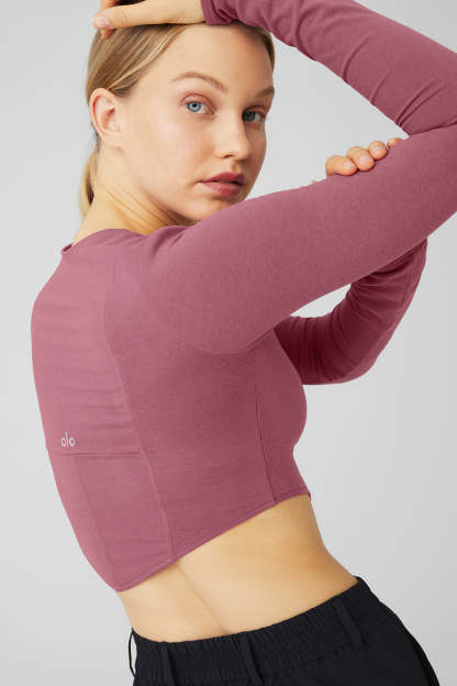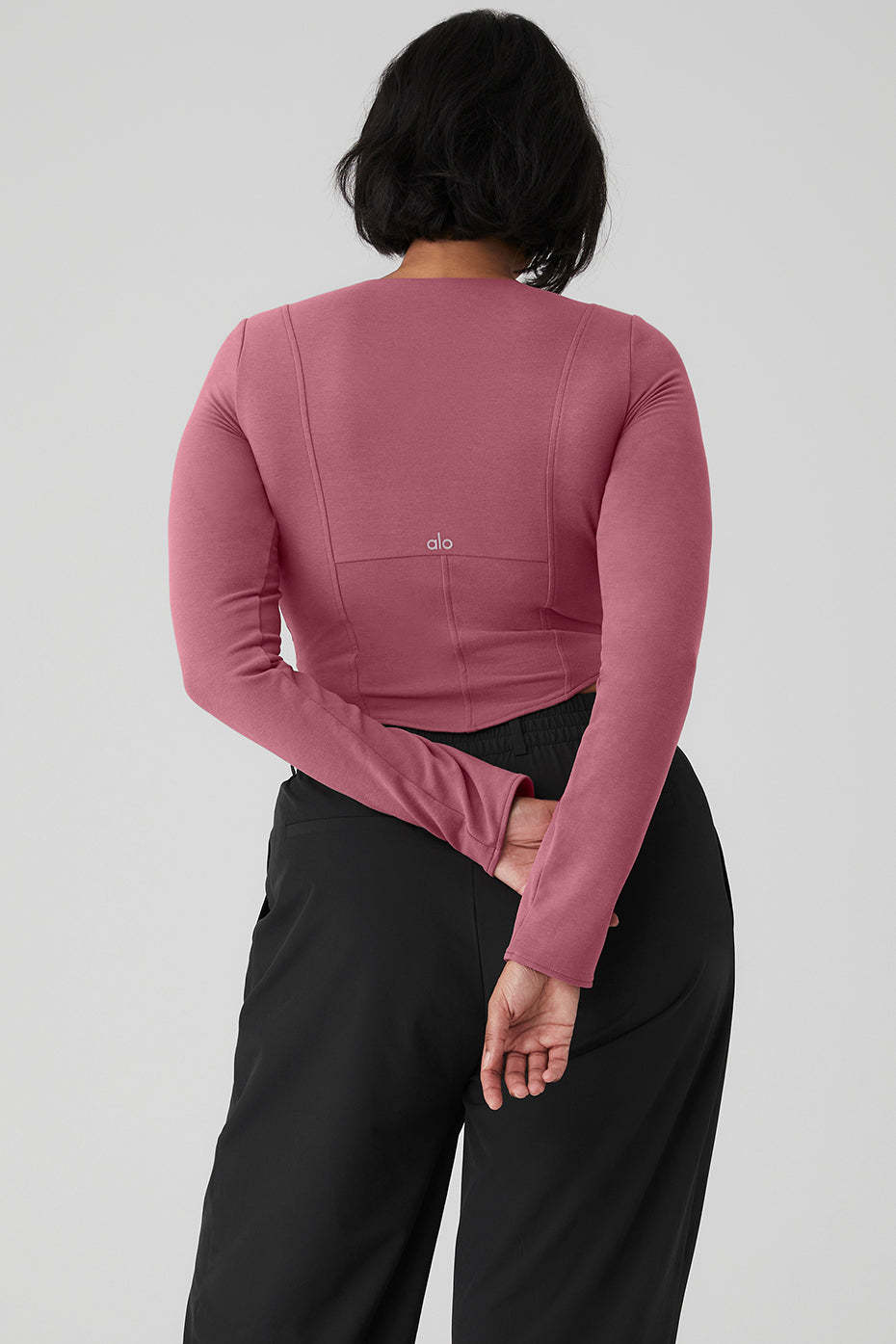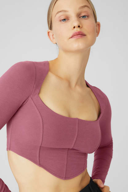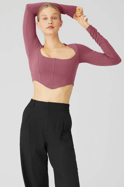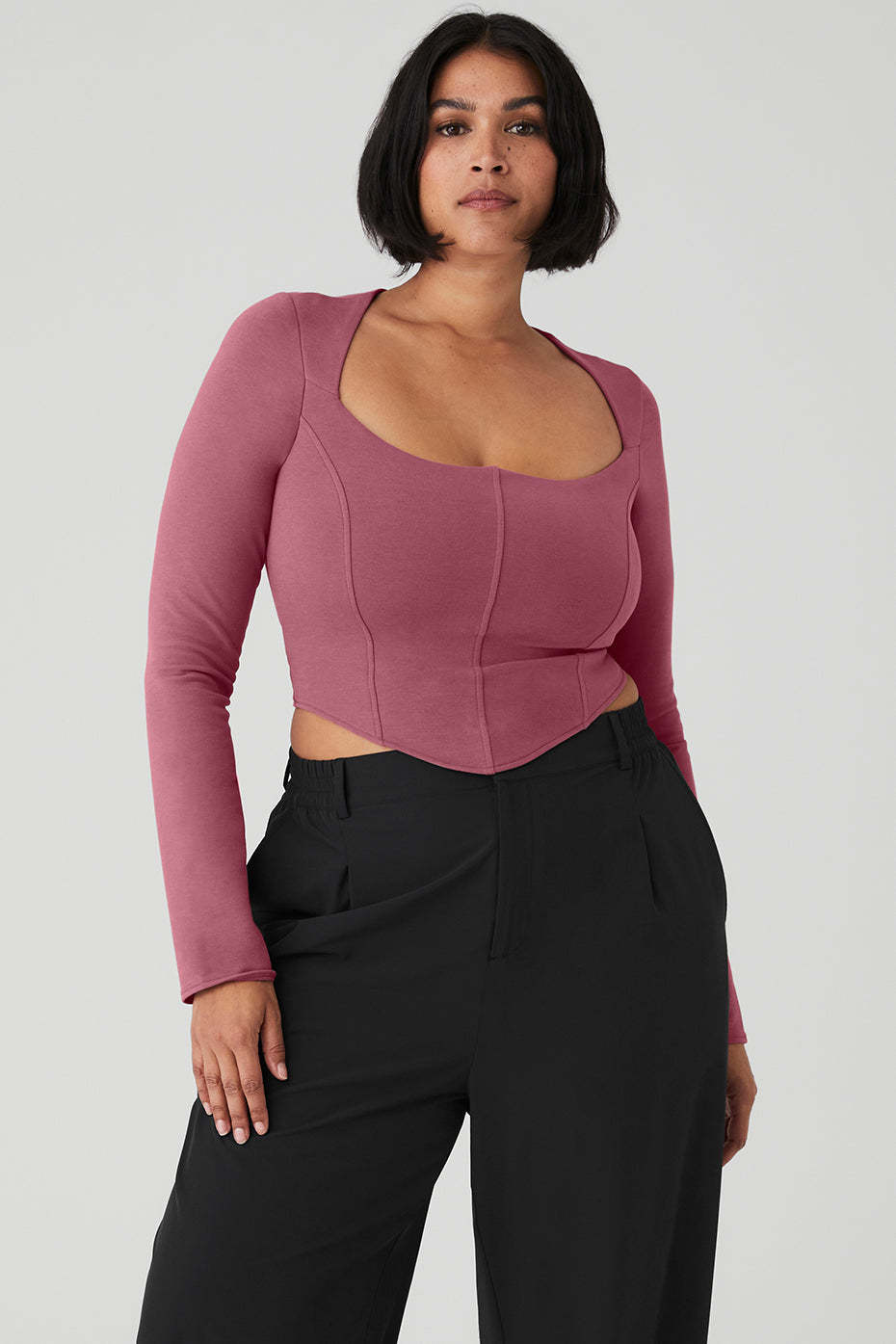 Corset panels shape super-soft micro French terry fabric into the street-sweet top of dreams. With long sleeves, princess seams and a sweetheart neckline, this crop top exudes L.A. cool girl vibes. Pair it with the matching ruched pant for a head-to-toe statement.