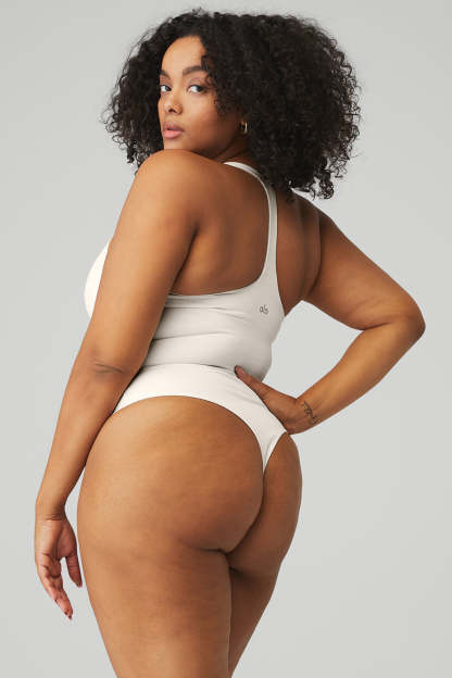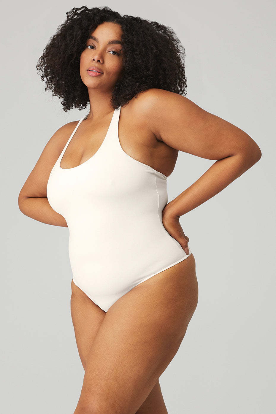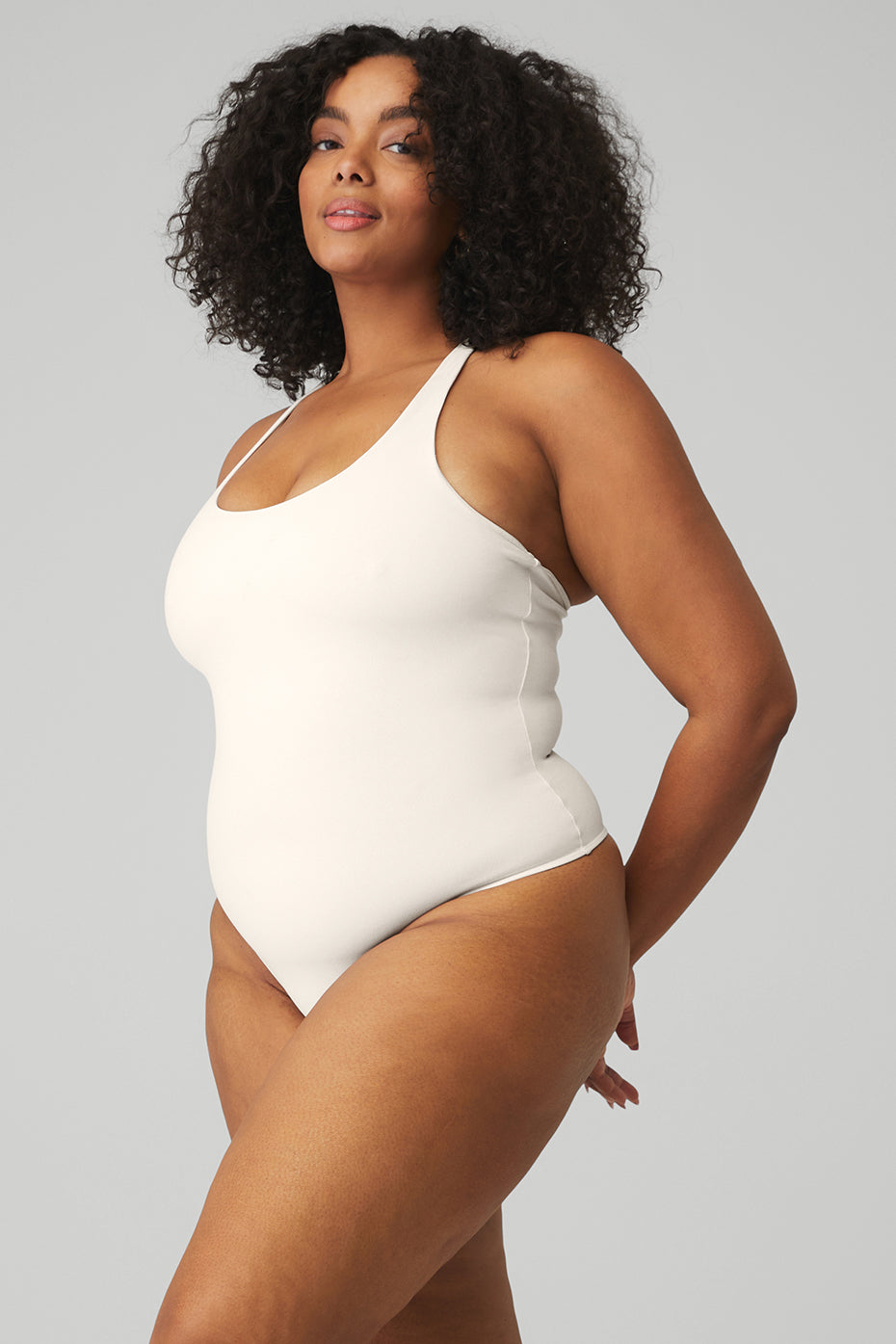 Literally the perfect layer 〞 no VPL, tons of cool. The Sleek Back Bodysuit in sculpting Airbrush features a built-in shelf bra for light support, a T-back, scoop neckline and a thong backside for super-smooth layering under leggings.