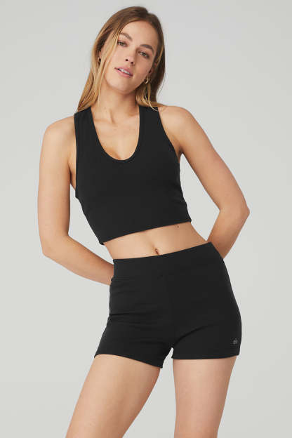 The Goddess Ribbed Cropped Racerback Tank has everything you want in a comfy, go-to top. Made in a soft ribbed knit, this tank features a V-neck, thick shoulder straps and cool racerback styling. Create so many versatile looks when you pair this with any signature athelo high-waist bottom.